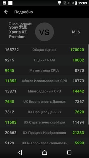 В любом случае данная SoC обеспечивает системе уверенное быстродействие и в реальных сценариях позволяет смартфону справляться со всеми без исключения задачами. Все проверенные нами игры, в том числе Modern Combat 5, Mortal Kombat X и другие, идут без малейших притормаживаний на максимальных настройках. Sony Xperia XZ Premium — это очень производительный аппарат, у которого имеется существенный «запас прочности» для будущих обновлений.