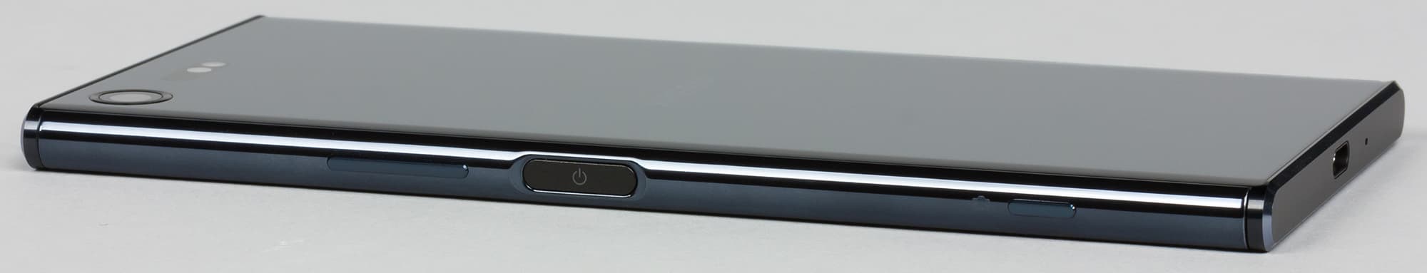 Все аппаратные кнопки расположены на правой грани. Та, которая отвечает за питание и блокировку, имеет встроенный сканер отпечатков пальцев, ее легко нащупать вслепую, удобно использовать. Другая кнопка, отвечающая за регулировку громкости, наоборот, совсем гладкая, скользкая, мелкая, за пределы корпуса выпирает мало. Ее нащупать вслепую трудно. Есть и третья, совсем маленькая и едва заметная, она традиционно для Sony отвечает за работу с камерой.