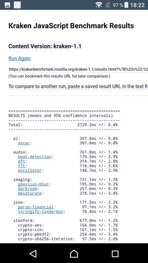 Что касается бенчмарков для оценки скорости движка javascript, то стоит всегда делать скидку на то, что в них результаты существенно зависят от браузера, в котором запускаются, так что сравнение может быть истинно корректным только на одинаковых ОС и браузерах, а такая возможность имеется при тестировании не всегда. В случае с ОС Android мы всегда стараемся использовать Google Chrome.