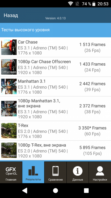 Все результаты, полученные нами при тестировании смартфона в самых свежих версиях популярных бенчмарков, мы для удобства свели в таблицы. В таблицу обычно добавляется несколько других аппаратов из различных сегментов, также протестированных на аналогичных последних версиях бенчмарков (это делается лишь для наглядной оценки полученных сухих цифр). К сожалению, в рамках одного сравнения нельзя представить результаты из разных версий бенчмарков, поэтому «за кадром» остаются многие достойные и актуальные модели — по причине того, что они в свое время проходили «полосу препятствий» на предыдущих версиях тестовых программ.