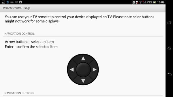 При активном MHL-подключении есть возможность использовать пульт ДУ телевизора для управления смартфоном — встроенная справка на трех страницах перечисляет кнопки пульта и их функции: