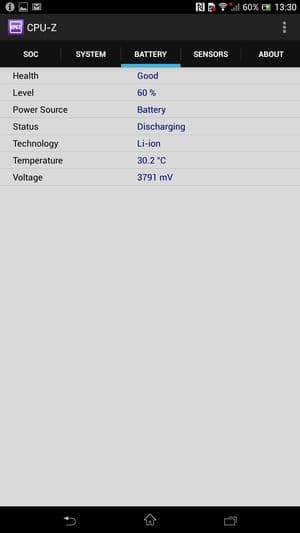 Аппаратная платформа Sony Xperia Z Ultra строится на базе однокристальной системы (SoC) Qualcomm Snapdragon 800. Центральный процессор здесь имеет 4 ядра Krait 400, работающих на частоте 2,2 ГГц (CPU-Z показывает 2,15 ГГц). Оперативной памяти в устройстве предусмотрено 2 ГБ, а хранилище, доступное пользователю для загрузки собственных файлов, составляет чуть больше 11 ГБ из номинально обозначенных 16 ГБ. Есть поддержка карт памяти microSD объемом до 64 ГБ, так что недостатка в памяти пользователь не ощутит. Поддержку в обработке графики процессору оказывает самый современный видеоускоритель Adreno 330.