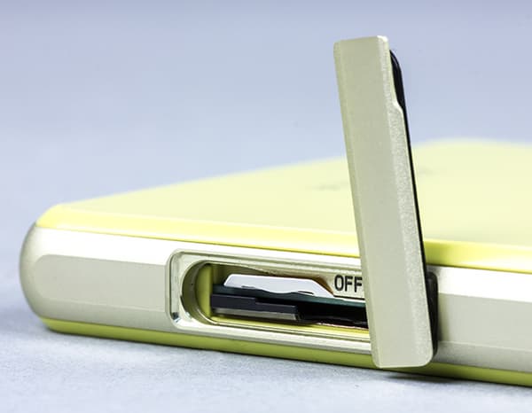 Нет у Sony Xperia Z1 Compact и съемной задней крышки — все слоты для карточек располагаются по бокам устройства. Карта памяти и SIM-карта вставляются в боковые щелевые слоты привычными способами: карточку памяти при нажатии на нее захватывает подпружиненный механизм, а SIM-карта въезжает в свой разъем на пластиковом выдвижном подносике. Данный способ крепления SIM-карты у Sony является наиболее удобным из всех других вариантов бокового крепления, потому что для изъятия карточки нет необходимости прибегать к помощи каких-либо дополнительных инструментов вроде скрепки или пинцета — пластиковый подносик имеет удобный уступ для захвата ногтем и выдвигается без малейших усилий. SIM-карта здесь используется формата Micro-SIM, карта памяти — формата microSD, поддерживаются карточки объемом до 64 ГБ.