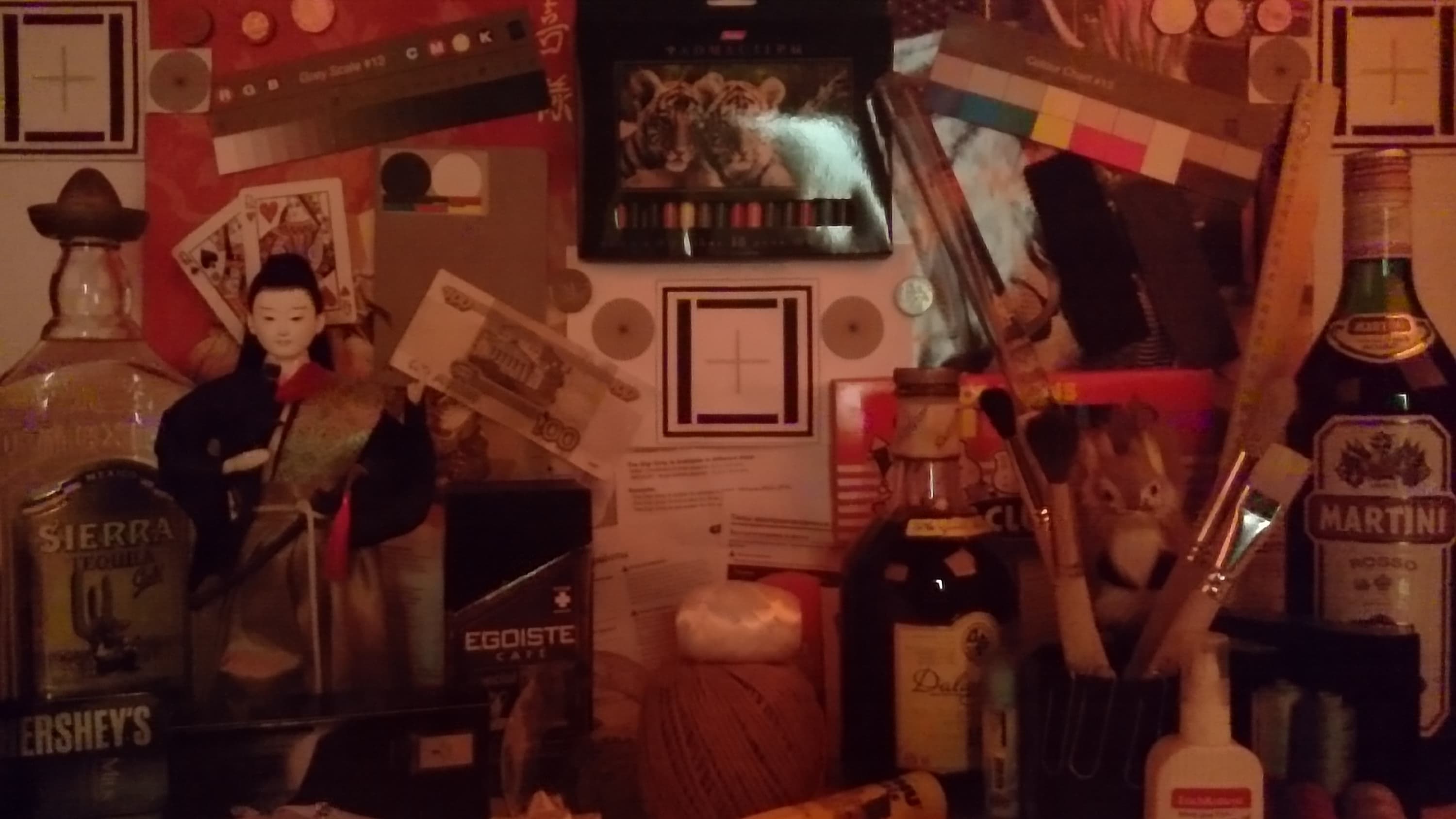 Видно, что цветопередача немного различается (при фотографировании цветовой баланс принудительно установлен на 6500 К), но это единственный обоснованный вывод, который можно сделать по фотографии. И белое поле: