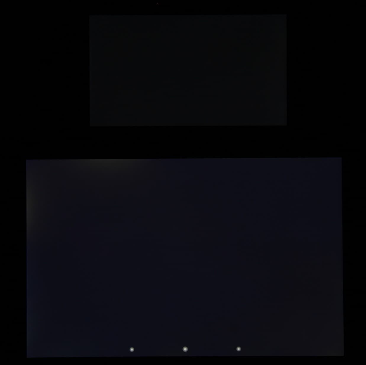 Отметим хорошую равномерность яркости и цветового тона. Теперь под углом примерно 45 градусов к плоскости и к стороне экрана: