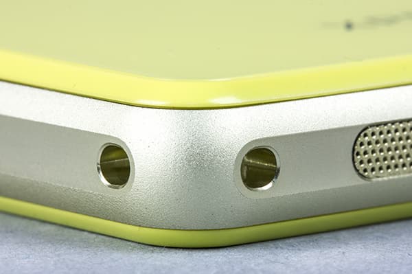 Решетка вызывного динамика выведена не на заднюю панель, а на нижний торец, что исключает перекрытие звука поверхностью стола, когда смартфон лежит «на спине». Помимо грамотного с технической точки зрения расположения эта решетка еще является весьма симпатичным элементом декора, добавляющим общему облику устройства красоты и сложности образа.