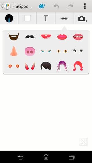 При выборе программы под любопытным названием «Набросок» появляется набор инструментов для рисования и рукописного ввода. Здесь можно выбрать кисти, краски, цвета, толщину линий, фактуру и т.д. Функциональность напоминает таковую у знаменитого стилусоориентированного Samsung Galaxy Note, только гораздо скромнее по возможностям, и здесь быстрая запись длинных текстов невозможна ввиду задержки (лага) между прикосновением и появлением черты на экране. В этой программе можно лишь неспеша что-то нарисовать, подобрать коллаж из готовых элементов, или накарябать пару фраз текста, но они будут не слишком разборчивы.