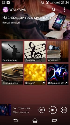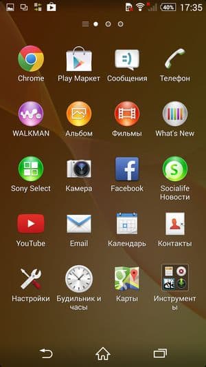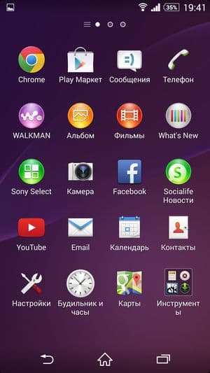 В качестве операционной системы используется свежая версия программной платформы Google Android 4.4.2 KitKat, поверх которой традиционно установлен собственный фирменный графический пользовательский интерфейс. Он не так сильно видоизменяет внешний вид и организацию всех элементов, как HTC Sense, и в то же время не так насыщен различными функциями и режимами, как интерфейс в аппаратах Samsung. Оболочка Sony в обновленной версии (ее, кстати, получили и предыдущие топовые модели, например Xperia Z Ultra) заимела кое-какие улучшения и дополнения, но в целом сохранила свои основные отличительные признаки: серьезность общего внешнего вида, лаконичность всех меню и подменю, а также знакомый традиционный набор фирменных предустановленных приложений.