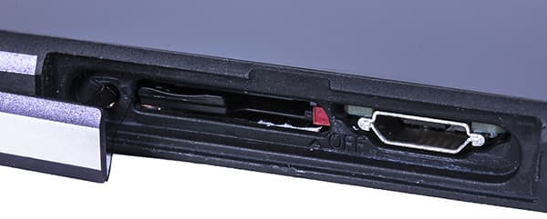 SIM-карта здесь вставляется в собственный боковой слот, оборудованный пластмассовым выдвижным подносиком, в который эта карточка закладывается. Никаких потайных кнопок здесь вдавливать не нужно, равно как не нужно носить с собой скрепку — подносик просто вытягивается наружу с помощью ногтя. Пожалуй, способ установки карточек в мобильных аппаратах Sony Mobile является наиболее удобным.