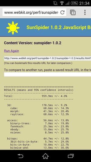 Что касается бенчмарков для оценки скорости движка javascript, то стоит всегда делать скидку на то, что в них результаты существенно зависят от браузера, в котором запускаются, так что сравнение может быть истинно корректным только на одинаковых ОС и браузерах, а такая возможность имеется при тестировании не всегда. В случае с ОС Android мы всегда стараемся использовать Google Chrome.