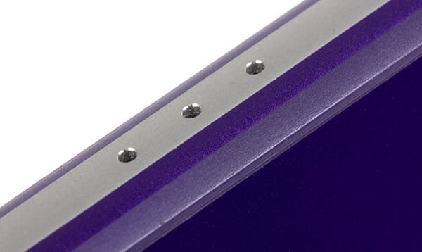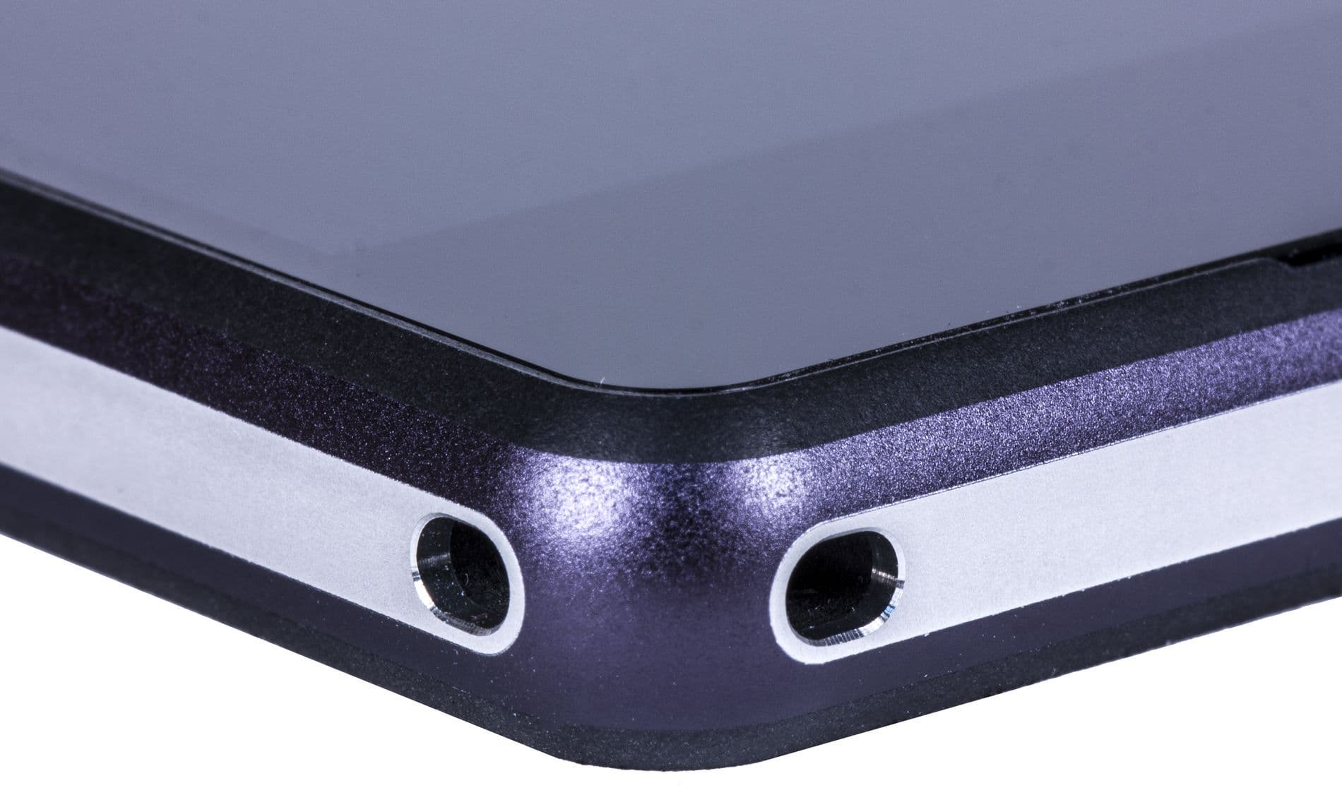 Корпус новинки, как и у предшественников, представлен в трех цветовых исполнениях: черном, белом и фиолетовом. Любопытно, что скосы боковых граней металлической рамки здесь выкрашены в общий цвет корпуса, то есть если корпус фиолетовый, то и скосы боковин тоже фиолетовые, а вот самая верхняя кромка всегда остается серебристой и неокрашенной.