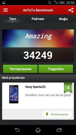 | AnTuTu 4.х (больше — лучше) | 34249 | 35603 | 36869 | 34669 | 31081 |