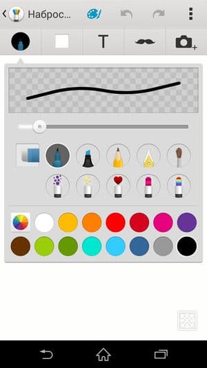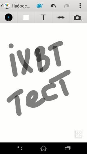 Набор предустановленных программ в смартфонах японской компании не слишком заметно меняется от трубки к трубке. Несколько онлайн-сервисов, таких как TrackID, Sony Select, What’s New, предлагают выбрать, купить и сразу запустить музыку, фильмы и игры. Timescape собирает информацию о социальной активности друзей. Имеется файловый менеджер, пакет для работы с офисными документами, нашлись также сканнер QR-кодов и популярная программа для создания заметок Evernote. Очень удобно, что Sony всегда предустанавливает полезную программу для полноценного бэкапа и восстановления как настроек, так и других данных. При запуске программы под любопытным названием «Набросок» появляется набор инструментов для рисования и рукописного ввода. Здесь можно выбрать кисти, краски, цвета, толщину линий, фактуру и т. д. Функциональность напоминает таковую у знаменитого стилусоориентированного Samsung Galaxy Note, только гораздо скромнее по возможностям, и здесь быстрая запись длинных текстов невозможна ввиду задержки (лага) между прикосновением и появлением черты на экране. В этой программе можно лишь неспеша что-то нарисовать, подобрать коллаж из готовых элементов.