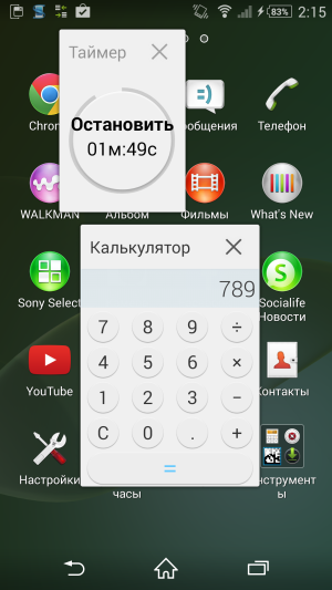 Никуда не исчезло и фирменное меню «малых приложений». Его можно обнаружить, если открыть список последних запущенных программ нажатием на крайнюю кнопку справа. Из этого меню можно получить быстрый доступ к календарю, калькулятору, секундомеру и заметкам, а также можно самостоятельно добавить туда другие приложения, которых в Google Play Store становится все больше. Эти приложения не только можно быстро запустить из данного меню, но они еще и открываются в отдельных маленьких окошках, что создает такой своеобразный многооконный режим работы.