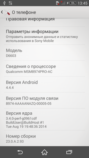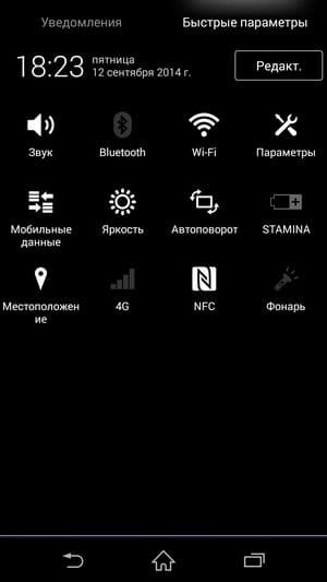 В качестве операционной системы используется свежая версия программной платформы Google Android 4.4.4 KitKat, поверх которой традиционно установлен собственный фирменный графический пользовательский интерфейс. Внутреннее обустройство оболочки, все меню, пункты настроек и всплывающие контекстные подменю — все осталось точно таким же. Однако внешне оболочка претерпела значительные изменения. Раньше элементы графического интерфейса у Sony были прорисованы достаточно мелко. Теперь, неожиданно, все элементы на экране, и главное, сами иконки приложений, стали выглядеть гораздо крупнее и четче. Шрифты увеличились, такие внезапные преобразования пошли смартфону только на пользу. Имеются и менее бросающиеся в глаза, но в некотором смысле более полезные доработки. Наконец-то в меню появилась, например, функция перезагрузки аппарата, ведь до этого только смартфоны Sony страдали отсутствием такой возможности. При необходимости перезагрузки аппарата необходимо было сначала выключить, а затем включить смартфон, что раздражало.