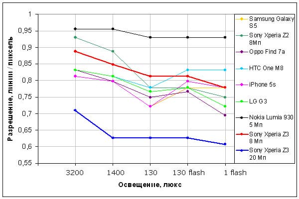 Смартфон попал к нам даже до официального представления в России, а посему вспоминается случай с Sony Z1 Compact, камеру которого мы не совсем заслуженно «зарубили». Проблема была в том, что из-за «сырости» образца хорошие снимки получались через раз, а то и через три. Скорее всего, дело там было в прошивке камеры, которая недостаточно адекватно обрабатывала сигнал с датчика изображения, отчего на снимках присутствовал характерный смаз. Похожий эффект возникает при вращении камеры вокруг оптической оси на относительно длинных выдержках, при этом резкость заметно ухудшается от центра к краям кадра. В итоге снимать камерой наверняка можно было разве что со штатива. Но у более поздних экземпляров смартфона камера стала заметно лучше.