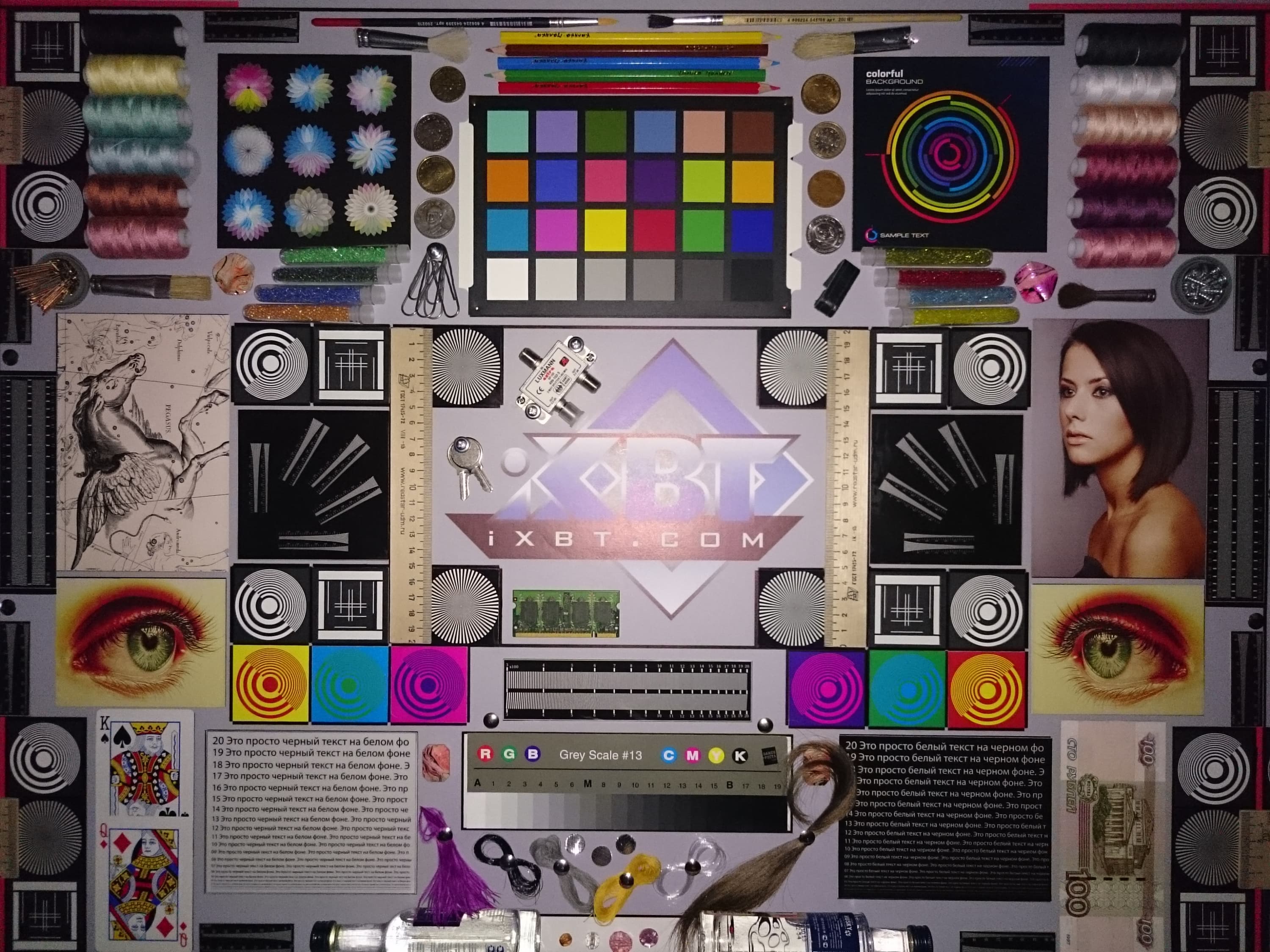 Отметим хорошую равномерность яркости и цветового тона белого поля. И тестовая картинка: