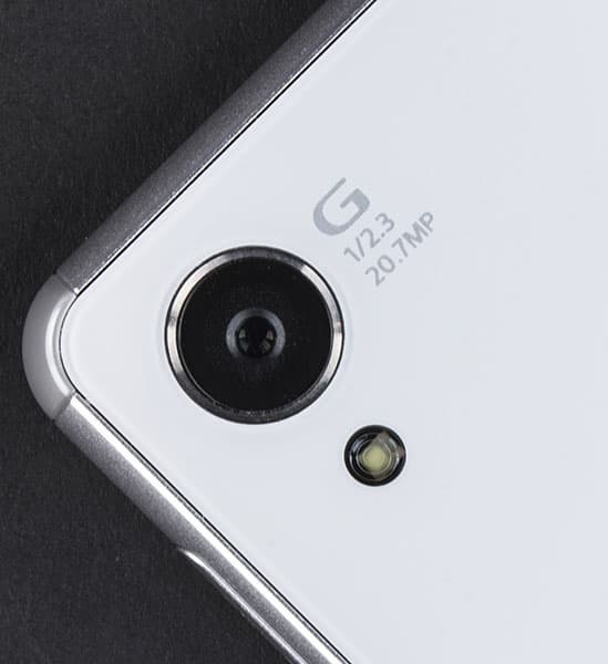 Sony Xperia Z3 оснащен двумя модулями цифровых камер с разрешением 20,7 и 2,2 Мп. Аппаратная база здесь точно такая же, как в Sony Xperia Z2, добавлены лишь программные эффекты. Основная 20,7-мегапиксельная камера оснащена объективом серии G Lens с фокусным расстоянием 27 мм и диафрагмой F2,0. В камере используется датчик Exmor RS for mobile формата 1/2,3 дюйма и процессор Bionz for mobile.