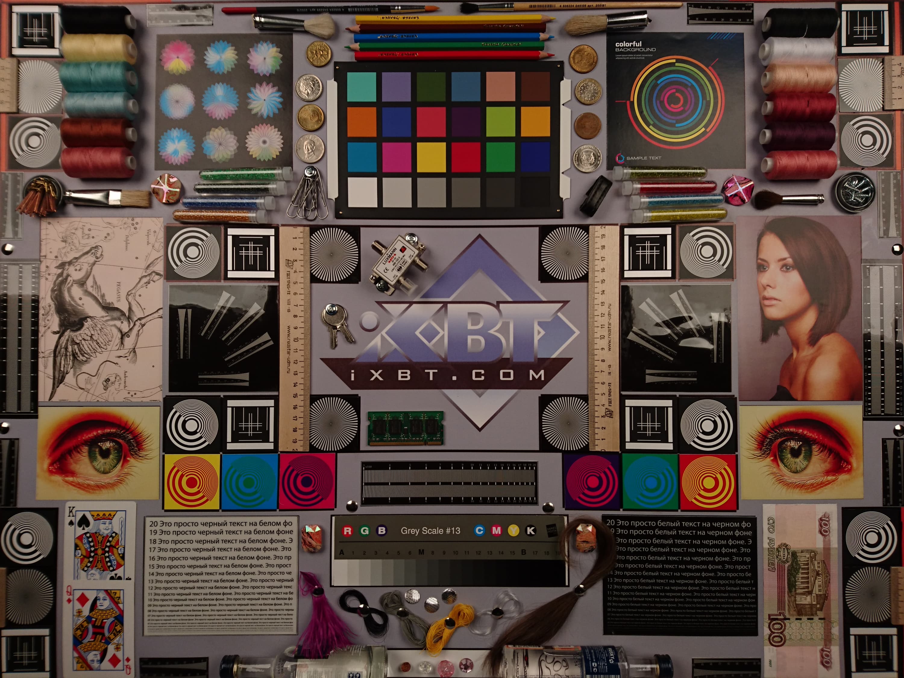 С вертикальными (в правой части) полосками все хорошо — четко, пиксель через пиксель. С горизонтальными (в левой части) все хуже, так как темные промежутки имеют толщину всего в один субпиксель и визуально мира видится просто как серое поле. На вертикальной при желании (и с помощью увеличительного стекла) полоски рассмотреть можно. Кроме того, внизу в начале горизонтальной миры вместо полоски выводится какое-то месиво — ошибка пересчета в разрешение странной матрицы. Однако формально черно-белое разрешение в 3840×2160 точек все же реализовано. Горизонтальная черная полоска есть? Есть! Засудить Sony за обман уже не получится, а реализовать и цветовое разрешение на уровне 3840×2160 точек в явном виде никто не обещал. Впрочем, это все придирки, разрешение экрана все равно запредельное.