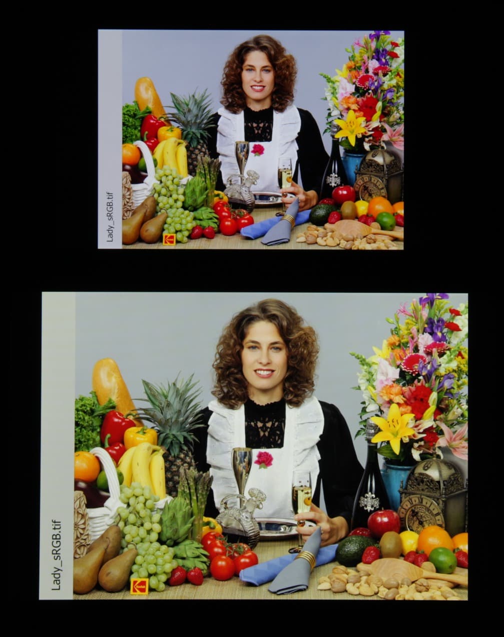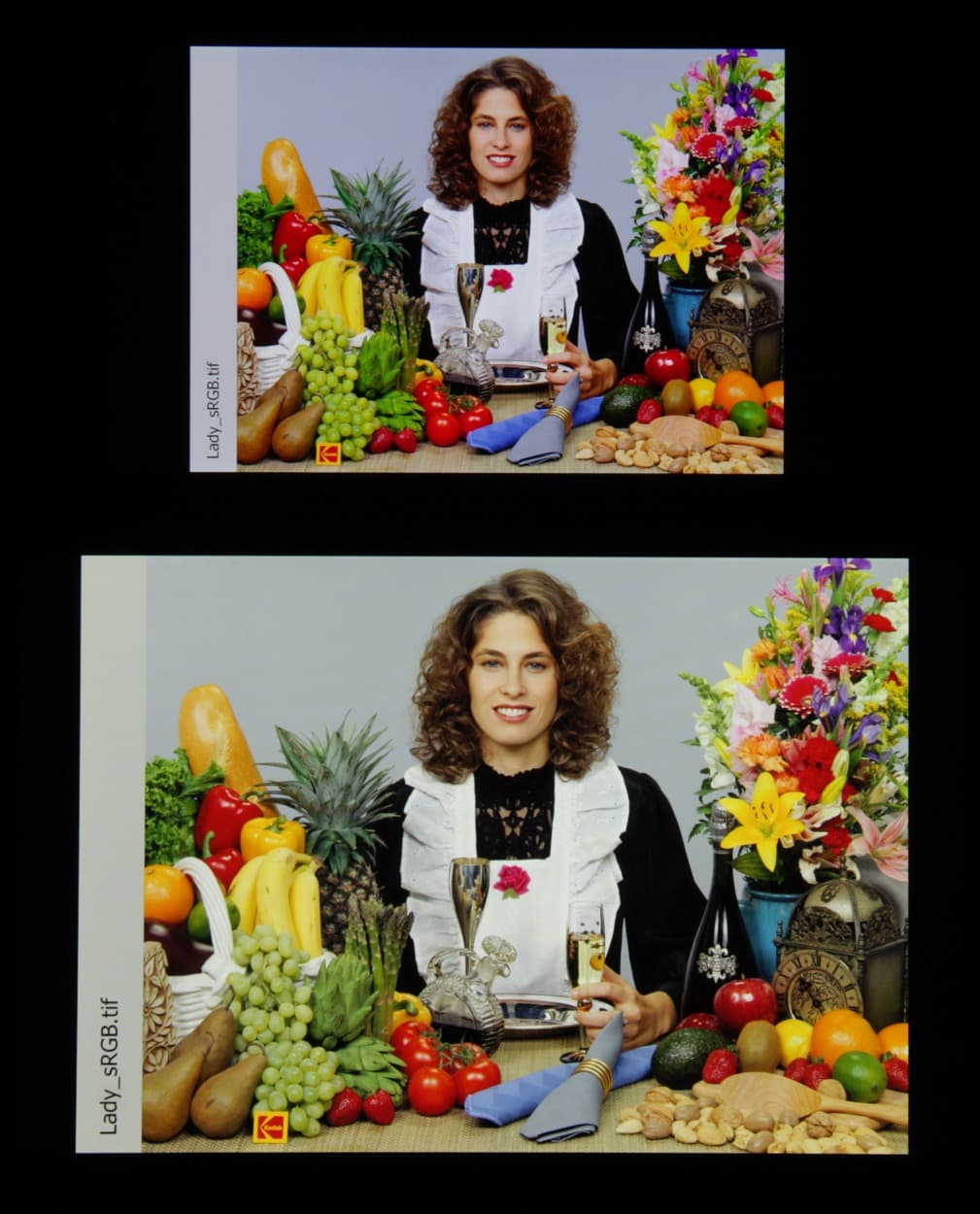 Они очень нетипичные для топовых мобильных устройств Sony. По всей видимости, в этом экране используются светодиоды с синим излучателем и зеленым и красным люминофором (обычно — синий излучатель и желтый люминофор), что в сочетании со специальными светофильтрами матрицы и позволяет получить широкий цветовой охват. В красном люминофоре, видимо, используются так называемые квантовые точки. К сожалению, в итоге цвета изображений — рисунков, фотографий и фильмов, — ориентированных на пространство sRGB (а таких подавляющее большинство), имеют неестественную насыщенность. Особенно это заметно на узнаваемых оттенках, например на оттенках кожи. Результат приведен на фотографии выше.