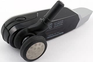 Для крепления заушины или петельки применена достаточно оригинальная конструкция — вращающийся «пенек» с тыльной стороны гарнитуры. При отсутствии заушины, его можно использовать как своеобразный упор, размещая гарнитуру в ухе наиболее удобным образом. Кроме того, повернув «пенек» в направлении микрофона гарнитуру можно прикрепить куда-нибудь на одежду, хотя держаться в таком положении она будет хуже, чем SH240 с ее мощным зажимом. Разъем для зарядки и подключения к компьютеру, что уже привычно, расположен в торце рядом с наушником и закрыт крышкой (дабы не нарушать обводы).