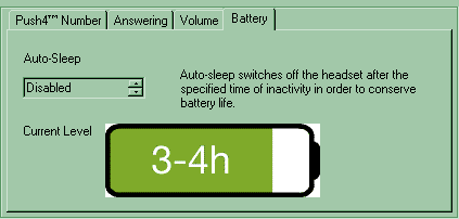 Жизненно-важным для любого мобильного устройства является уровень заряда его аккумулятора, но вот узнать его в случае гарнитур обычно не представляется возможным — какие-либо средства индикации есть только для случая, когда он подходит к концу. Пользователю SH505 достаточно лишь в режиме ожидания четыре раза нажать на Push4 и все — автоматическая «кукушка» короткими звуковыми сигналами сообщит, сколько еще устройству «жить осталось» (один сигнал равен примерно часу работы).