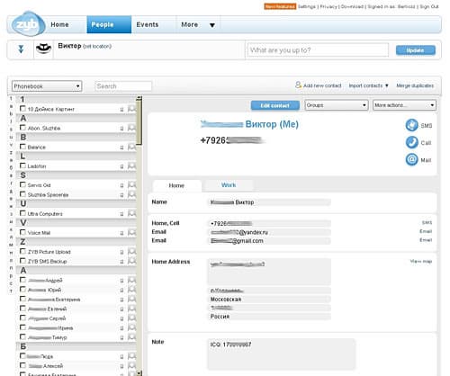 Один из немногих русскоязычных сервисов в обзоре. Интерфейс выполнен достаточно аскетично, наличествует исключительно инструментарий для редактирования и внесения информации. В качестве технологической основы используется AJAX, поэтому работать с интерфейсом сайта достаточно удобно даже на медленных каналах. К сожалению, никакой изюминкой, среди себе подобных, ресурс не выделился. Для синхронизации предоставлено всего 2 БД: контакты и календарь. Так что рекомендовать его можно лишь небольшой группе читателей, для которых важно наличие русского интерфейса, а интерес представляет только возможность синхронизации контактов.