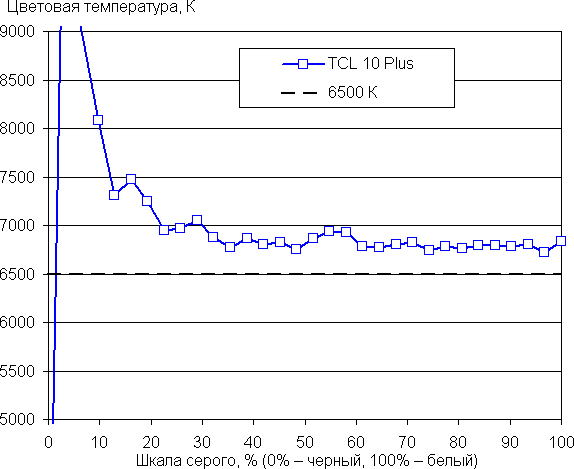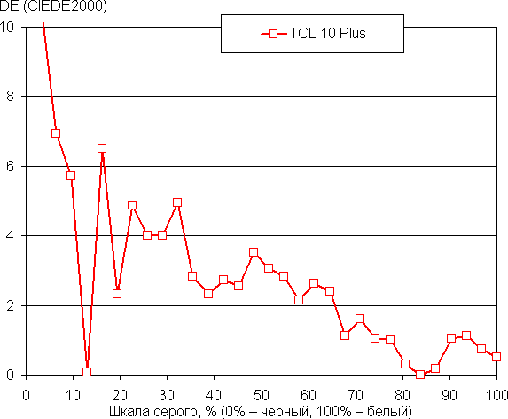 (Самые темные области шкалы серого в большинстве случаев можно не учитывать, так как там баланс цветов не имеет большого значения, да и погрешность измерений цветовых характеристик на низкой яркости большая.)