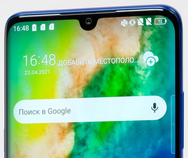 Фронтальная камера установлена в каплевидном вырезе в матрице экрана, расположенном прямо по центру.