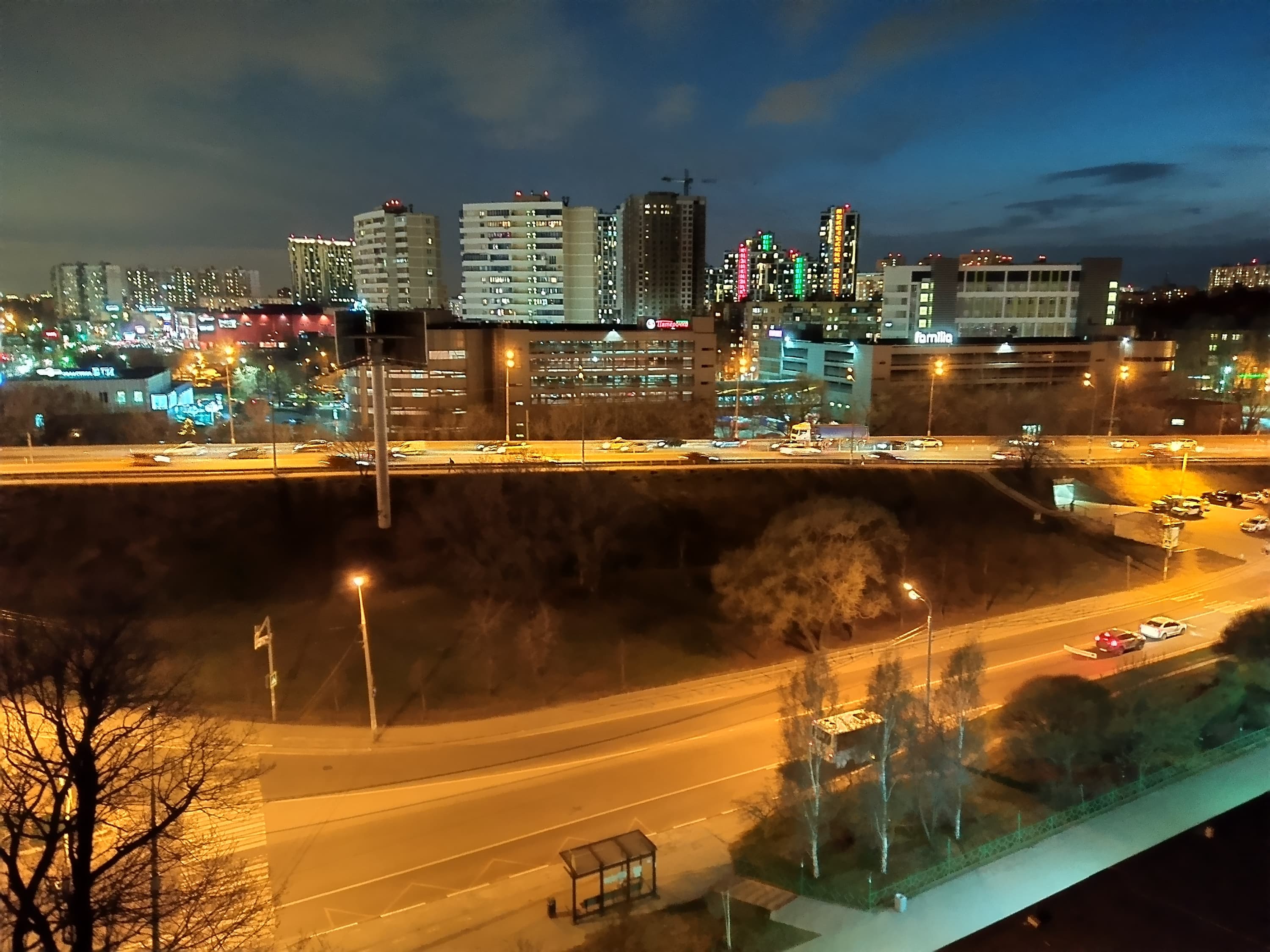 Ночной режим заметно высветляет картинку и добавляет резкости, из-за чего контуры мелких объектов становятся рыхлыми (это обычно называется «перешарпом»). Выглядит не очень, поэтому при обилии ночных огней лучше, пожалуй, снимать в обычном режиме, выйдет более натурально, хотя объекты и не будут такими четкими. В общем, все зависит от ситуации, но ночной режим все же предназначен для темноты, а не для ночного города.