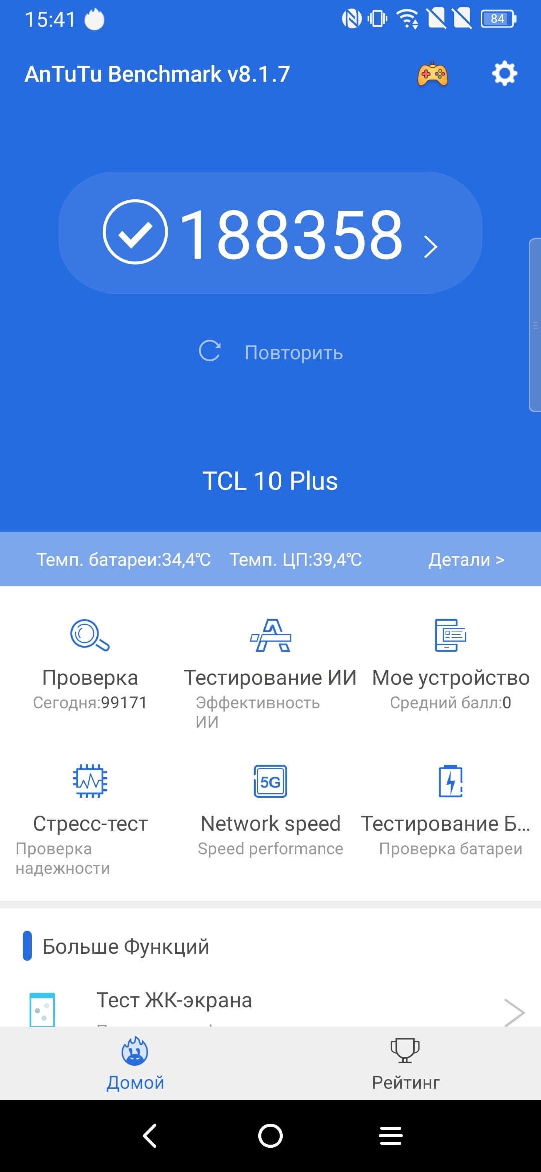 TCL 10 Plus имеет встроенную батарею с привычной для современных смартфонов емкостью. Автономность у смартфона не особо впечатляющая — высокий нагрев и существенный тротлинг под нагрузкой подсказывают, что потребление компонентов высоковато. В реальной эксплуатации смартфон ведет себя так же, как большинство современных смартфонов: без ночной зарядки ему не обойтись.