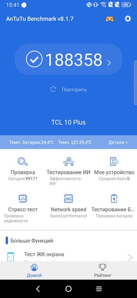 | AnTuTu (v8.x) (больше — лучше) | 188358 | 195703 | 285369 | 112287 | 147546 |