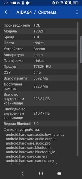 - Операционная система Android 10 (с обновлением до Android 11), TCL UI