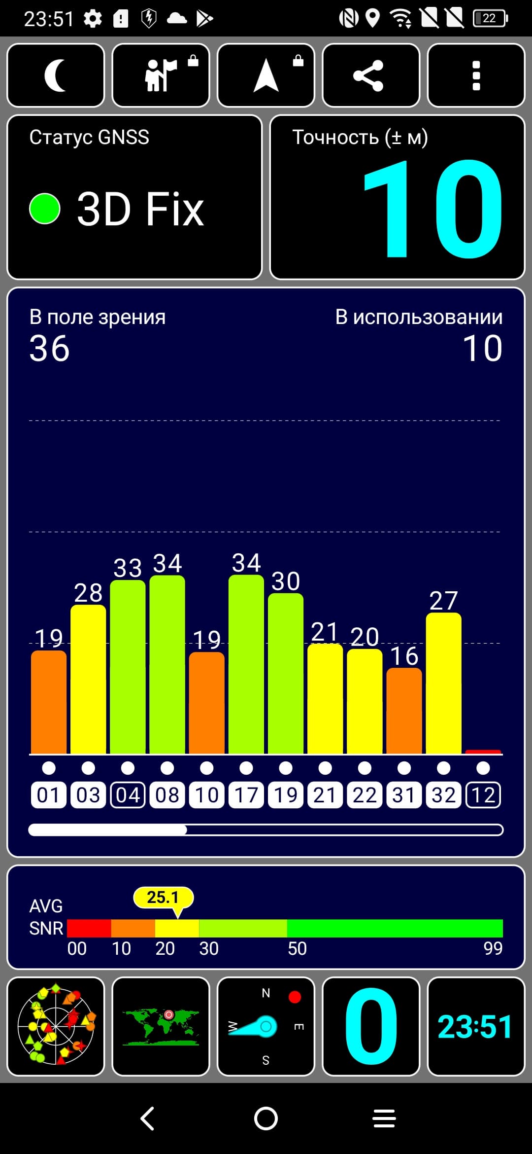 Навигационный модуль работает с GPS (с A-GPS), с отечественной Глонасс и с китайской Beidou. Первые спутники даже при холодном старте обнаруживаются быстро, точность позиционирования не вызывает претензий.