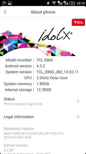 Основные характеристики TCL Idol X+ (модель TCL S960)