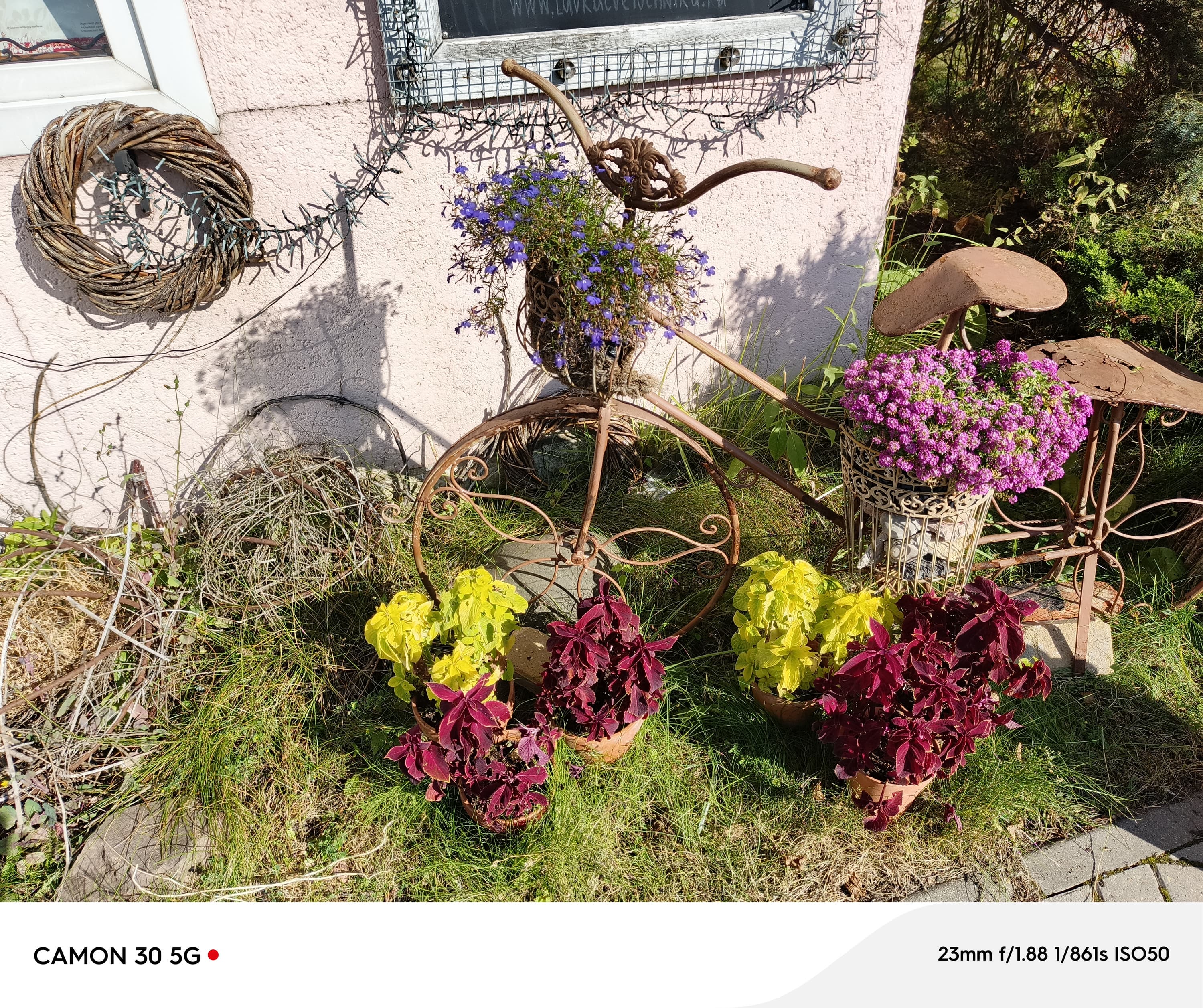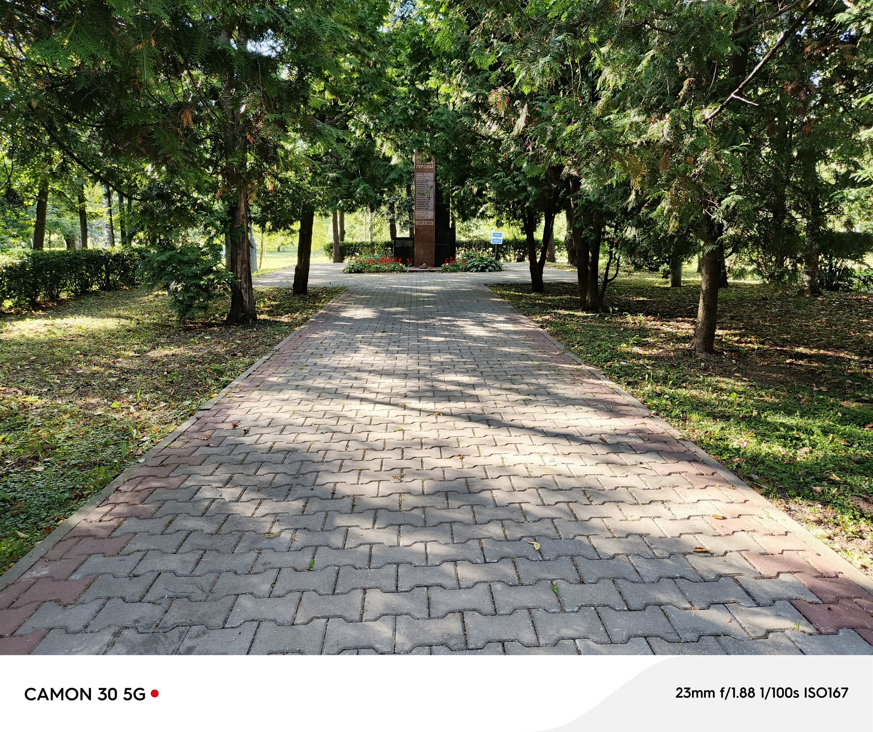 При хорошем освещении камера снимает очень хорошо для недорогого смартфона. В одном месте у края кадра есть пятно нерезкости, а шарпинга чуть многовато, но по большому счету, придраться-то и не к чему. Детализация, четкость, контраст, объем — всё в норме. Фотографии обходятся без пересветов и недоэкспонированных участков, получаются сочные и яркие — ну, может, чуть приукрашенные по цветам.
