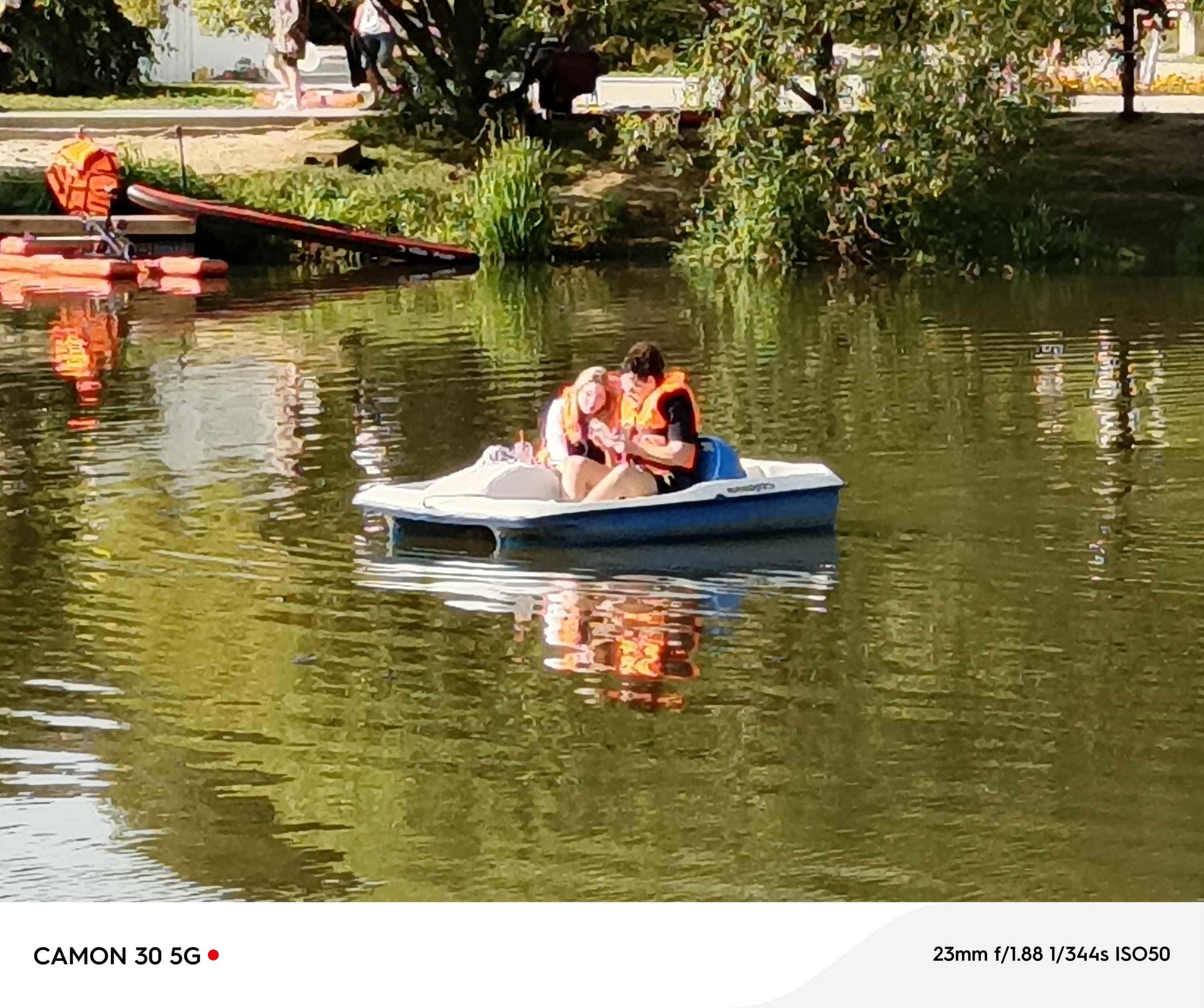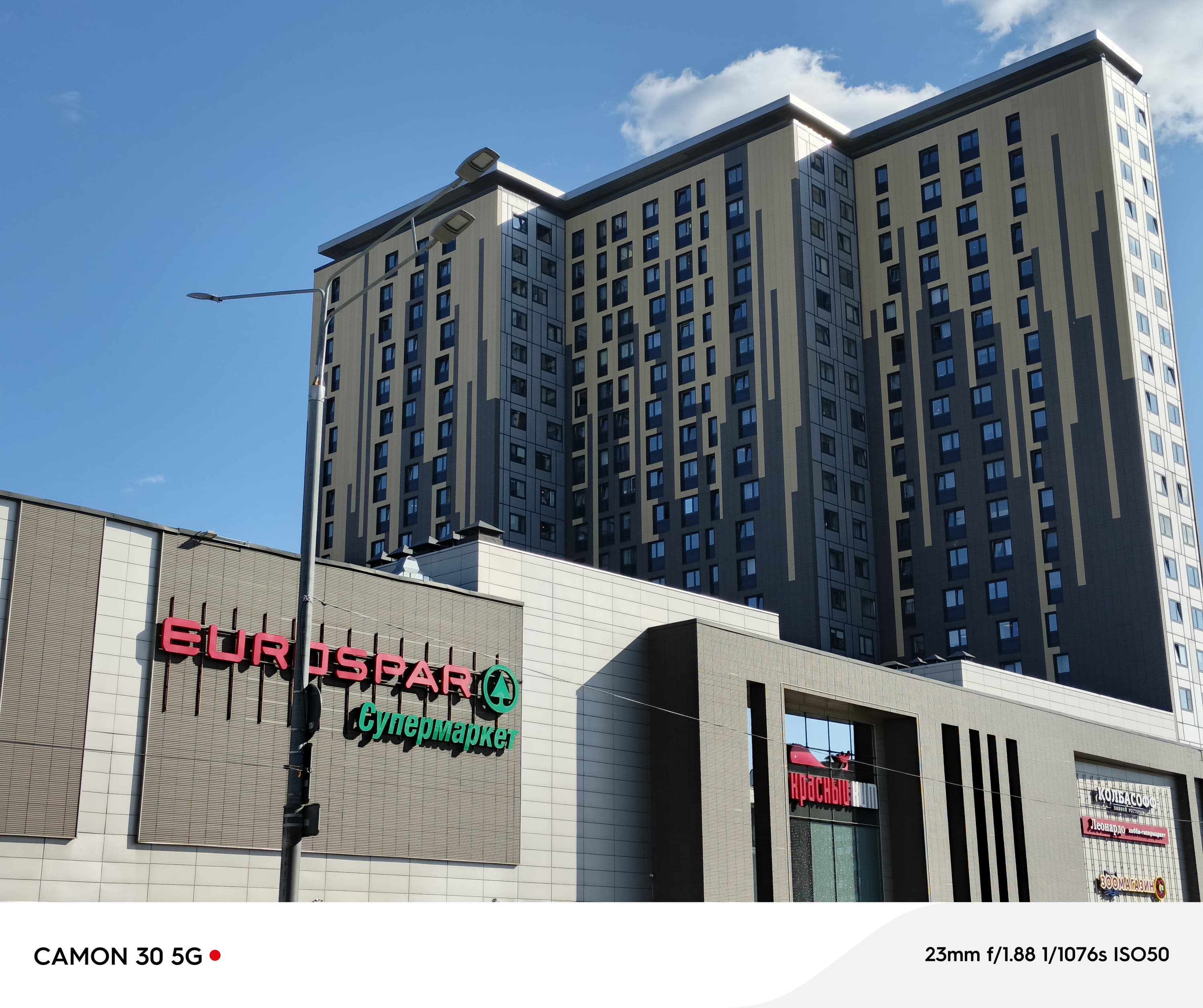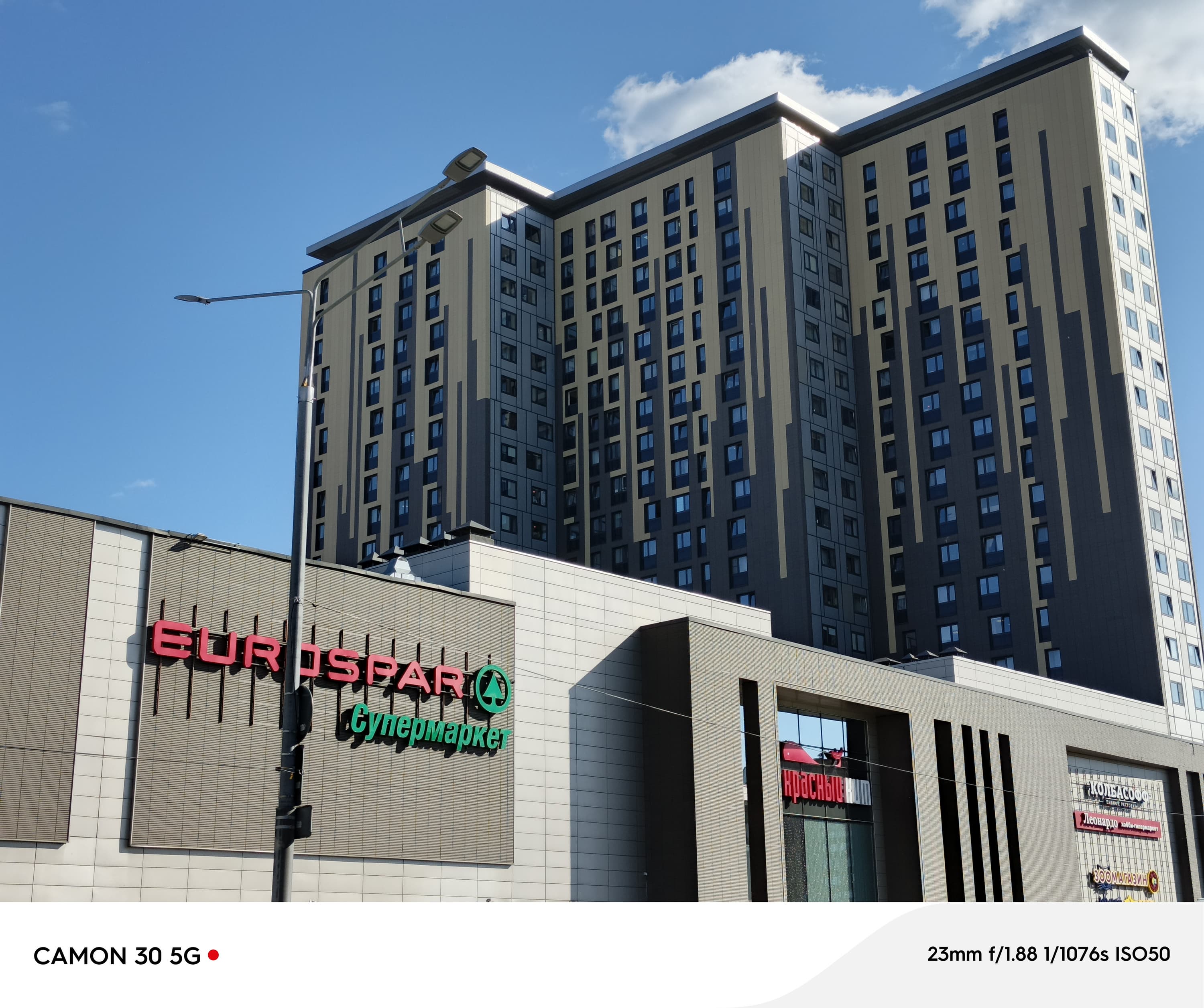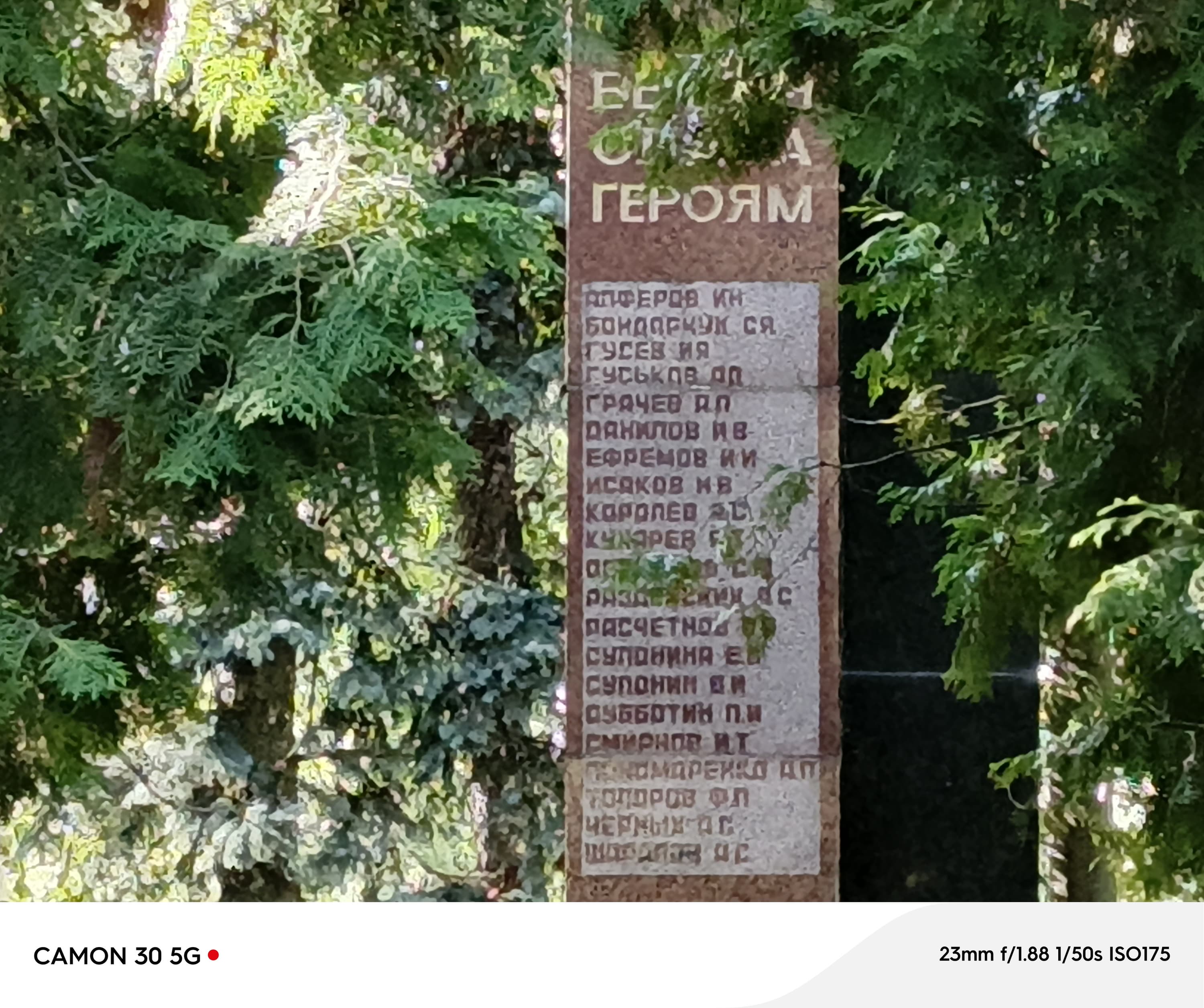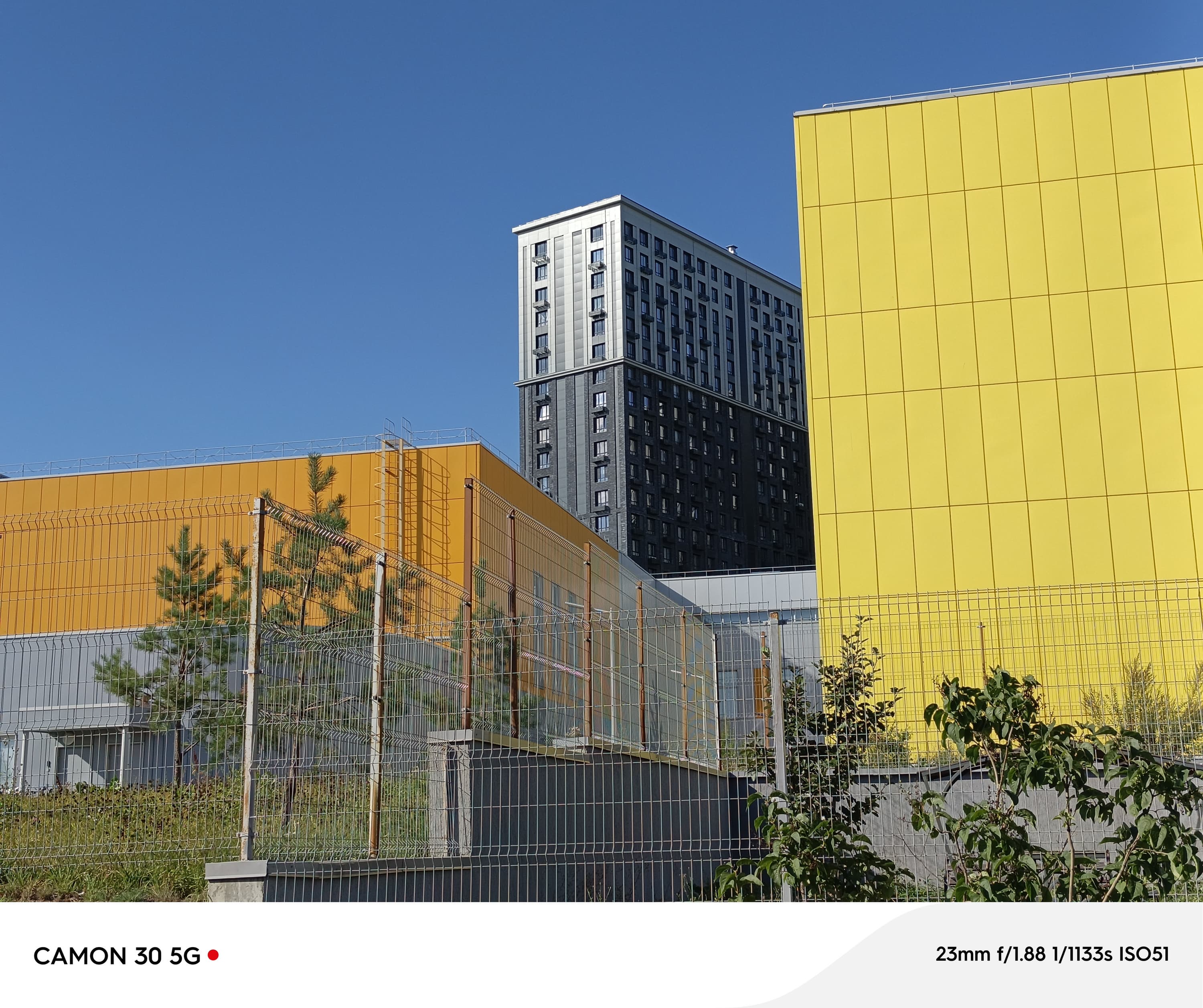 Эта камера с сенсором 50 Мп (1/1,57″) и объективом f/1,9 имеет и адекватный фазовый автофокус, и даже оптический стабилизатор. По умолчанию она выдает снимки в разрешении 12,5 Мп с функцией объединения пикселей 4-в-1, но можно переключиться и на съемку в ином разрешении. Вот только большие снимки выдаются не в положенном разрешении 50 Мп, а в 100 Мп. Согласно описанию, это называется «алгоритмом съемки повышенной четкости». В принципе, выглядит результат действительно неплохо, обесцвеченные шумы видны, но не слишком мешают, детализация явно выше, изображение достаточно четкое по всему полю кадра… Однако справедливо это почему-то лишь для некоторых фотографий (например, для последней пары в галерее ниже), в остальных же случаях 100-мегапиксельные фотографии представляют собой грубо «апскейлнутые» 12-мегапиксельные варианты. Мы так и не поняли, от чего зависит результат, но в общем случае не рекомендуем связываться с полноразмерными фото, тем более что выигрыш по детализации не настолько уж большой.