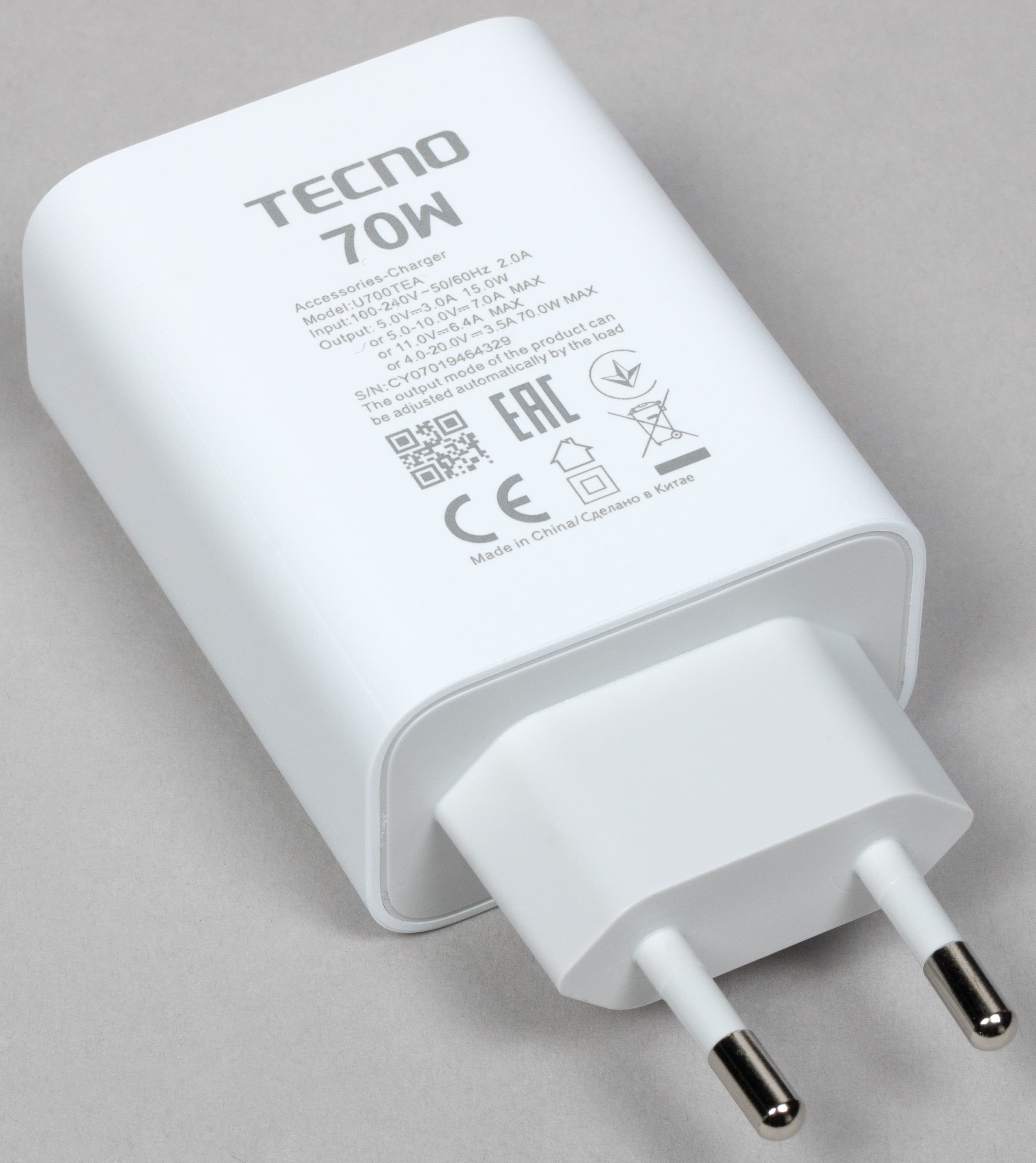 - Аккумулятор 5000 мА·ч, зарядка 70 Вт