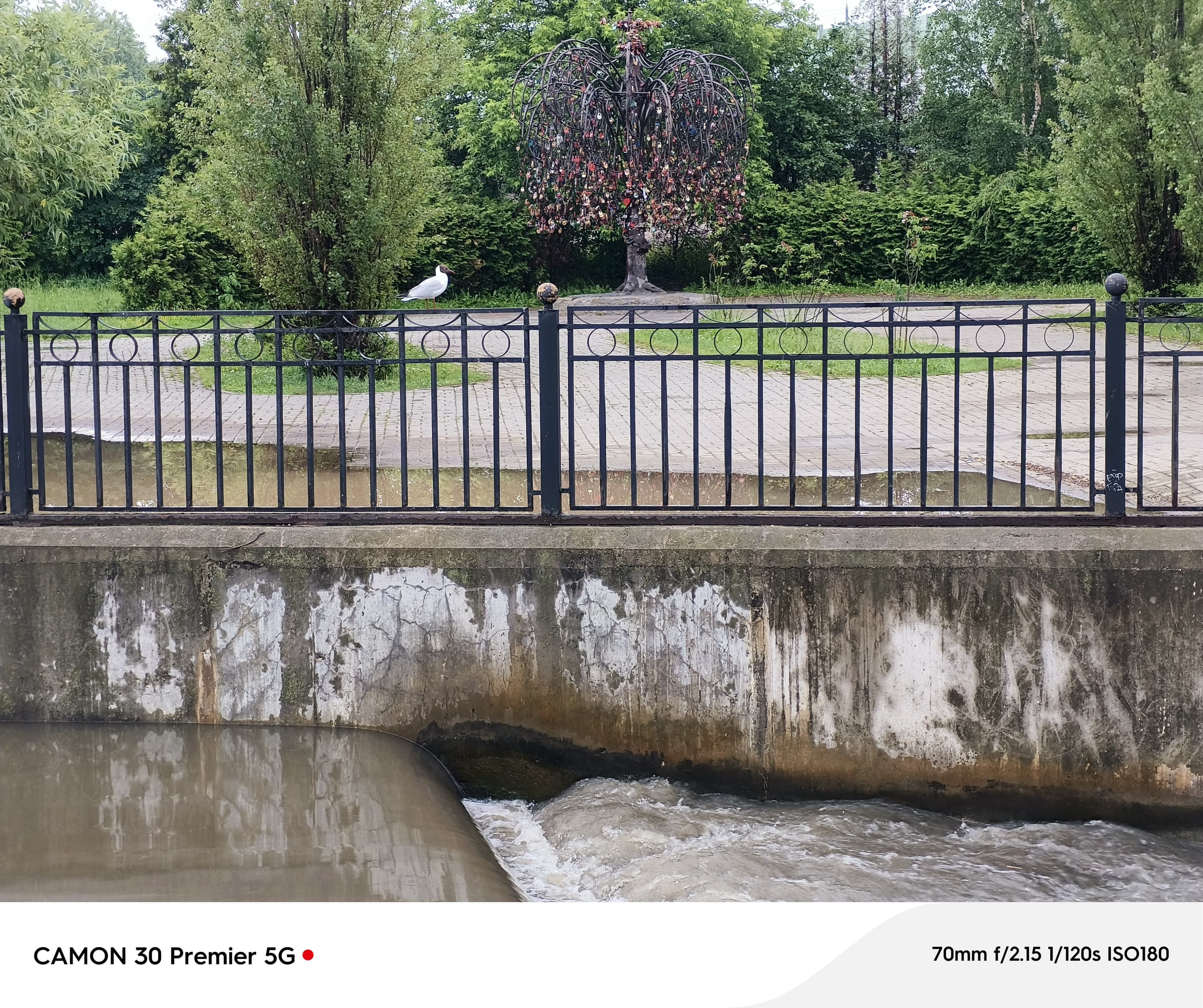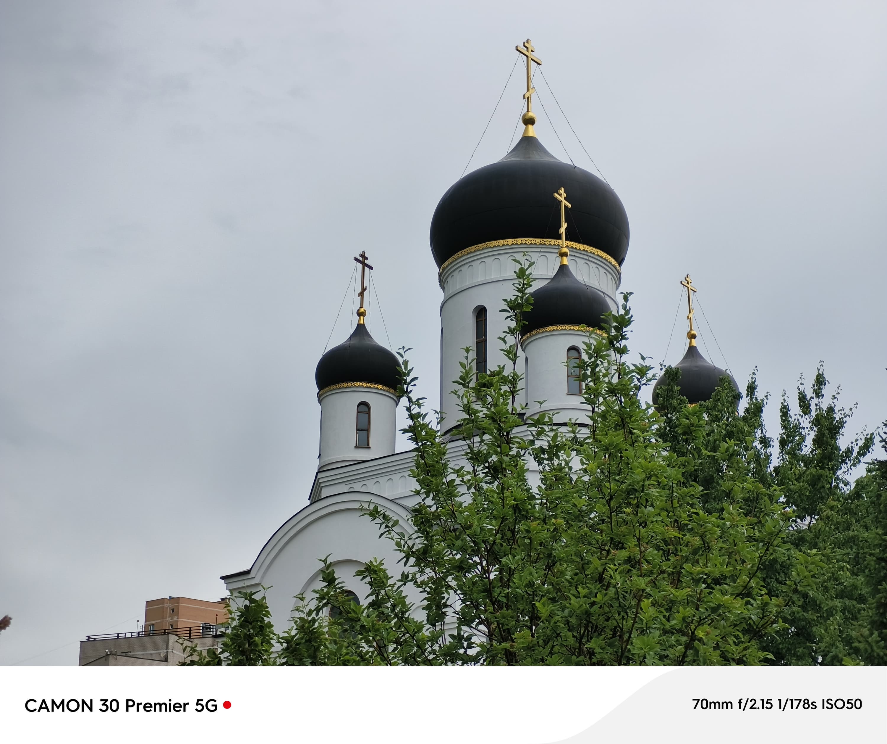 Зум-камера с сенсором Samsung Isocell JN1, реализующая оптический зум 3×, тоже предлагает два варианта разрешения, но здесь уже обходится без сюрпризов: это 12 Мп или 48 Мп. Обработка уменьшенных фотографий здесь столь же агрессивная, на пользу это не идет, а вот полноразмерные фотографии оставлены «как есть» и вполне неплохи в плане детализации, хотя, конечно, рыхловаты (сам сенсор гораздо меньше). Можно добавить, что снимки темноваты, широты динамического диапазона всё же немного не хватает. Для съемки отдаленных объектов эта камера весьма эффективна, она действительно позволяет разглядеть удаленные детали, а вот в качестве портретного объектива с такой обработкой работать будет плохо — придется грузить полноразмерные фотографии в графический редактор.