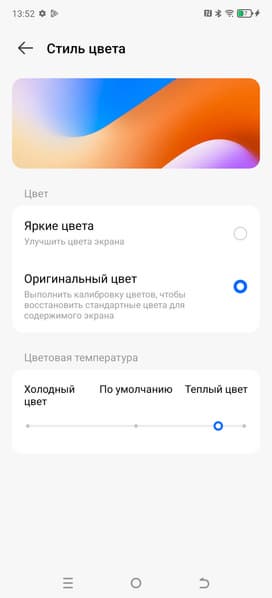 Фотография выше получена после выбора профиля Оригинальный цвет в настройках экрана. Всего профилей два.