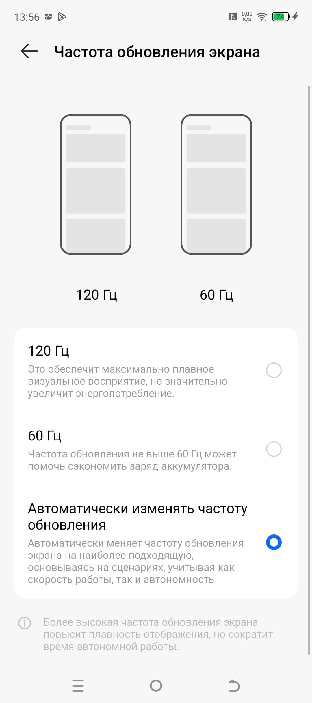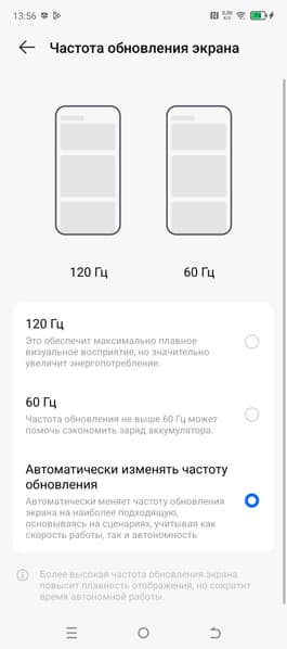 В настройках экрана можно включить режим с повышенной до 120 Гц частотой обновления: