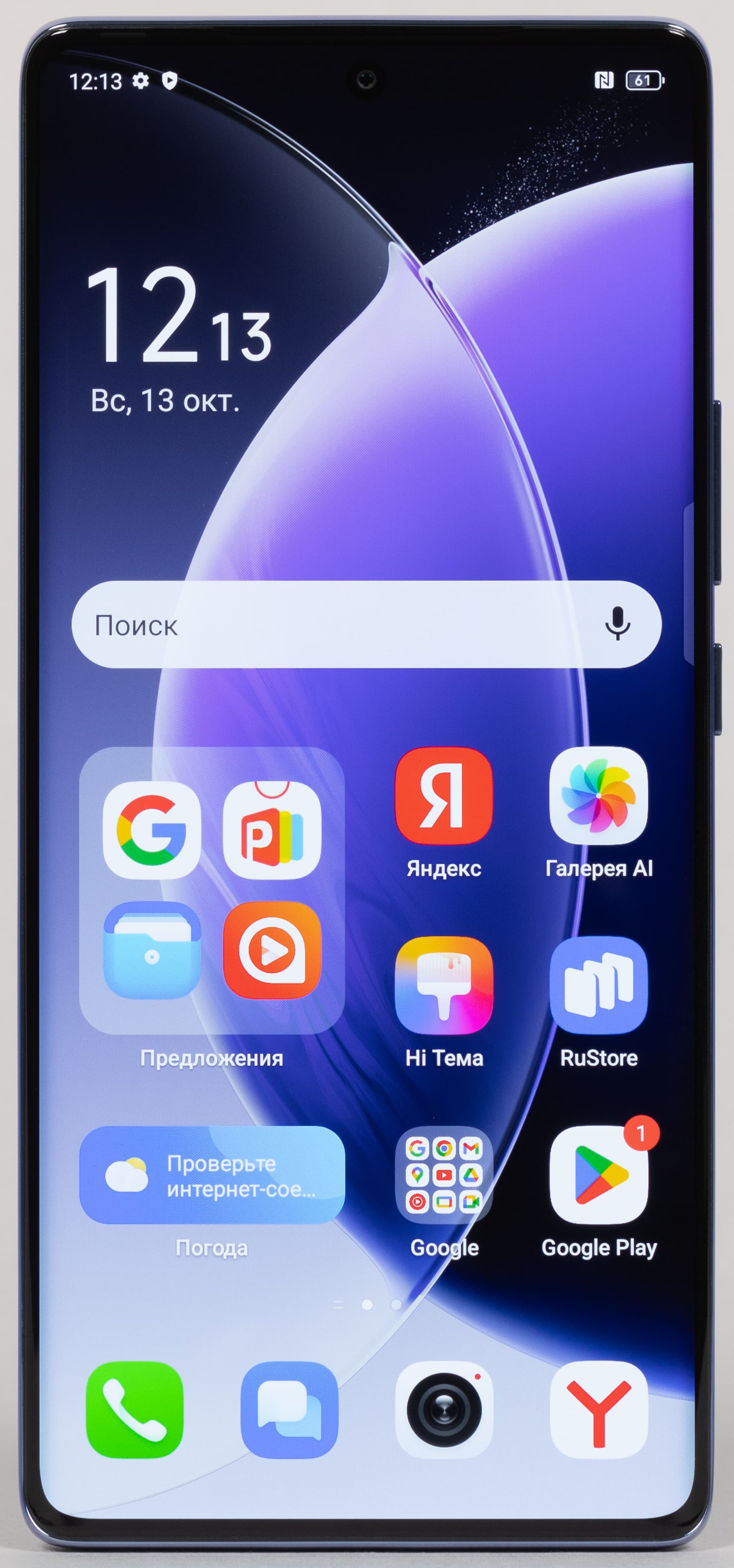 Подведем итоги. Экран имеет очень высокую максимальную яркость (потенциально до 970 кд/м² и точно 530 кд/м²) и обладает отличными антибликовыми свойствами, поэтому устройством можно будет пользоваться вне помещения даже летним солнечным днем. В полной темноте яркость можно понизить до комфортного значения (вплоть до 2 кд/м²). Допустимо использовать и режим с автоматической подстройкой яркости, работающий более-менее адекватно, но не позволяющий пользователю настраивать свою работу под индивидуальные требования. К достоинствам экрана нужно отнести отсутствие видимого мерцания, эффективное олеофобное покрытие и режим с повышенной до 120 Гц частотой обновления, а также правильную поддержку цветовых профилей (по крайне мере sRGB и DCI-P3 — при выборе правильного профиля и при использовании штатной программы Галерея AI). Заодно напомним про общие достоинства OLED-экранов: истинный черный цвет (если в экране ничего не отражается), хорошая равномерность белого поля, заметно меньшее, чем у ЖК, падение яркости изображения при взгляде под углом. Отдельно отметим, что с точки зрения качества изображения, от загнутых краев только вред, так как эта дизайнерская находка вносит искажения цветового тона и уменьшает яркость на краях картинки, а в условиях внешней освещенности приводит к неизбежным бликам вдоль хотя бы одной длинной стороны экрана. Тем не менее, в целом качество экрана высокое.