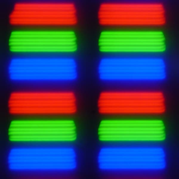 В данном смартфоне используется матрица типа IPS. Микрофотографии демонстрируют типичную для IPS структуру субпикселей:
