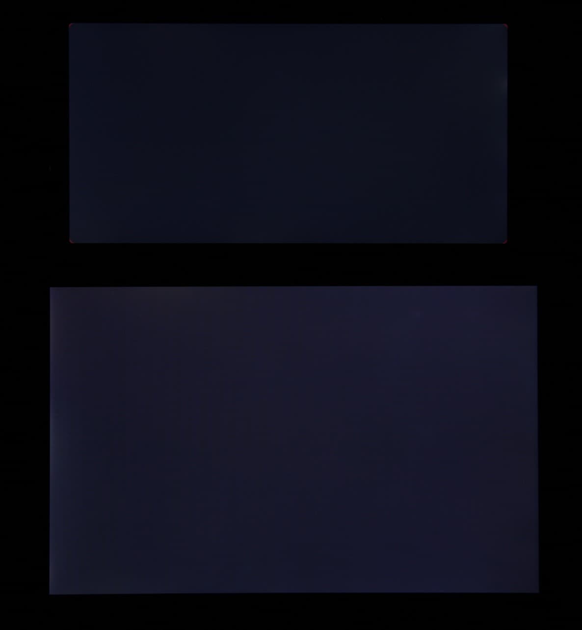 При перпендикулярном взгляде равномерность черного поля средняя, ближе к краю черное поле местами заметно высветляется (для наглядности подсветка установлена на максимальную яркость):