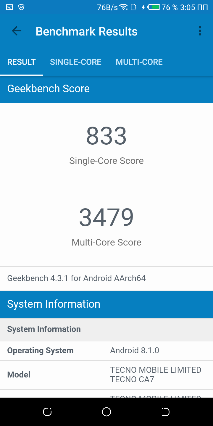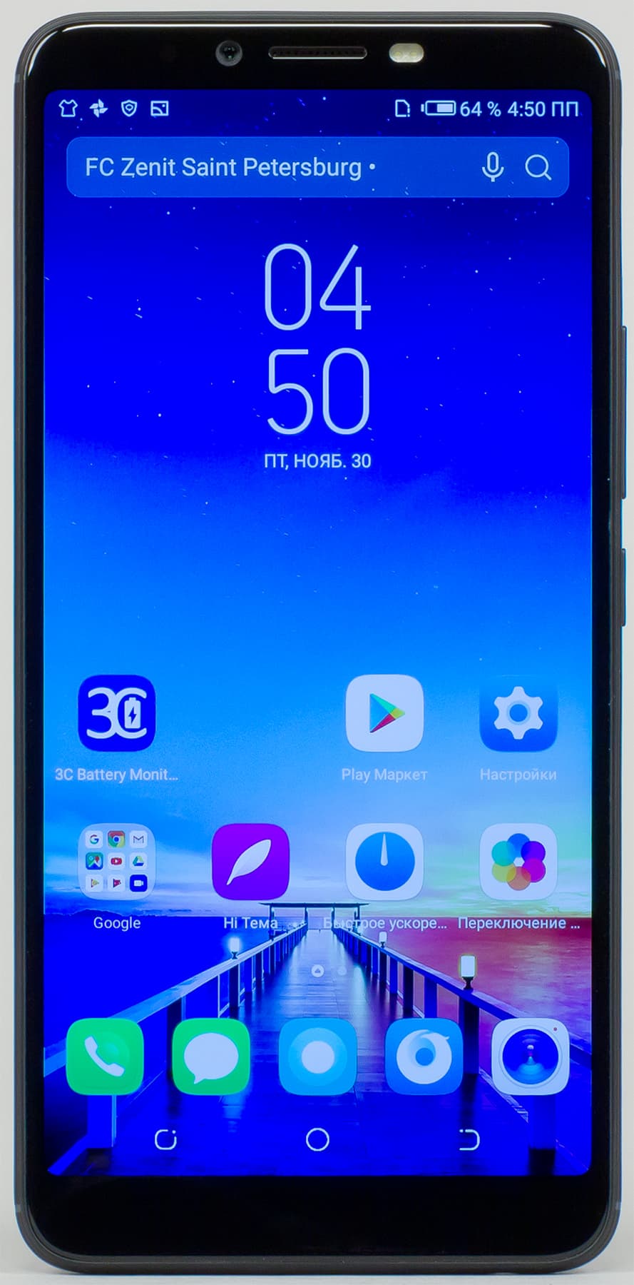 - SoC MediaTek MT6763, 8 ядер (ARM Cortex-A53) @1,5/2,0 ГГц