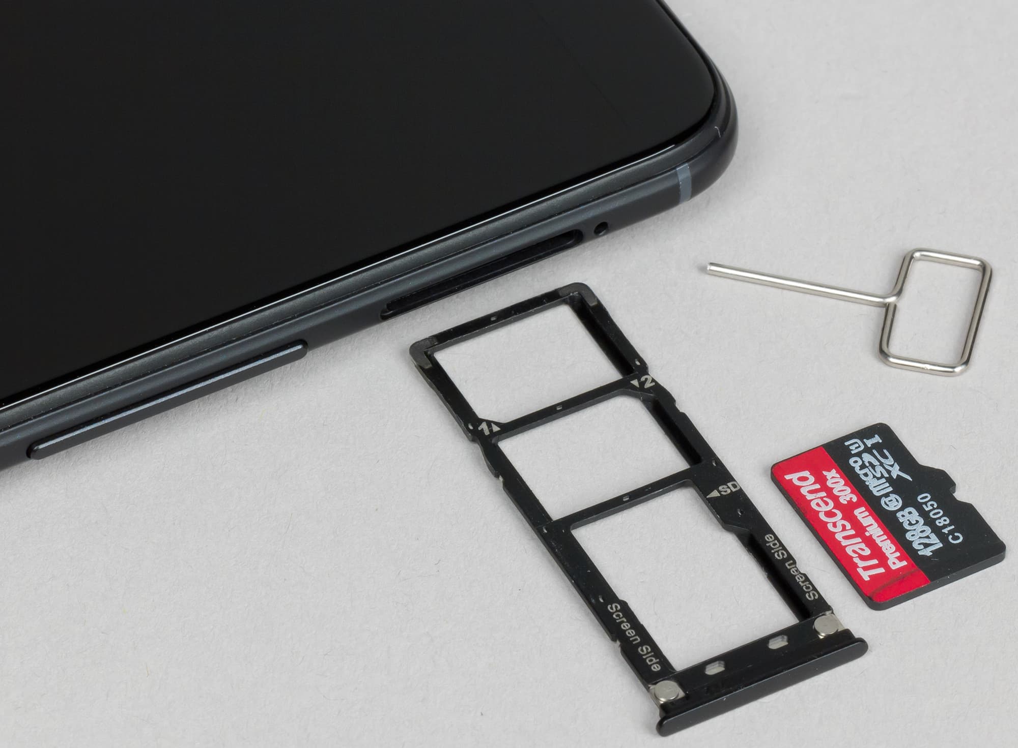 Разьем для карт тройной: в него можно установить сразу 2 SIM-карты формата Nano-SIM и карту памяти microSD, ничем не жертвуя. Это удобно. Поддерживается горячая замена карточек.