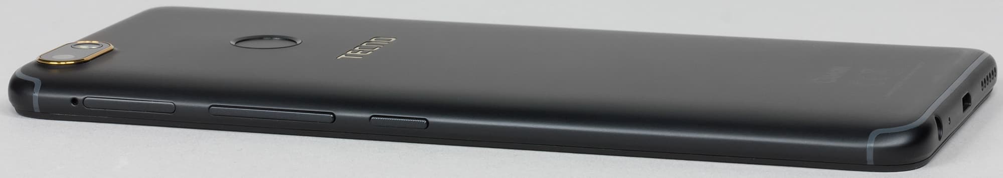 Нет здесь и пресловутого выреза-челки в экране, а углы самого дисплея хоть и закруглены зачем-то, но совсем чуть-чуть. Фронтальная камера над экраном имеет собственную яркую двухэлементную светодиодную вспышку. Любопытно, что она не служит здесь индикатором событий, как у того же Camon 11 — здесь в качестве информационного используется отдельный диод.