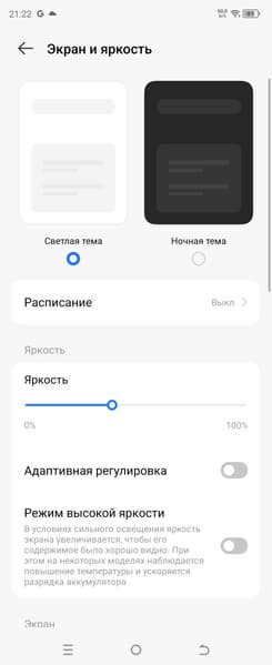 Разумеется, присутствует настройка (Режим защиты зрения), позволяющая снизить интенсивность синей компоненты. В принципе, яркий свет может приводить к нарушению суточного (циркадного) ритма (см. статью про iPad Pro с дисплеем 9,7 дюйма), но всё решается снижением яркости до низкого, но еще комфортного уровня, а искажать цветовой баланс, уменьшая вклад синего, нет абсолютно никакого смысла.