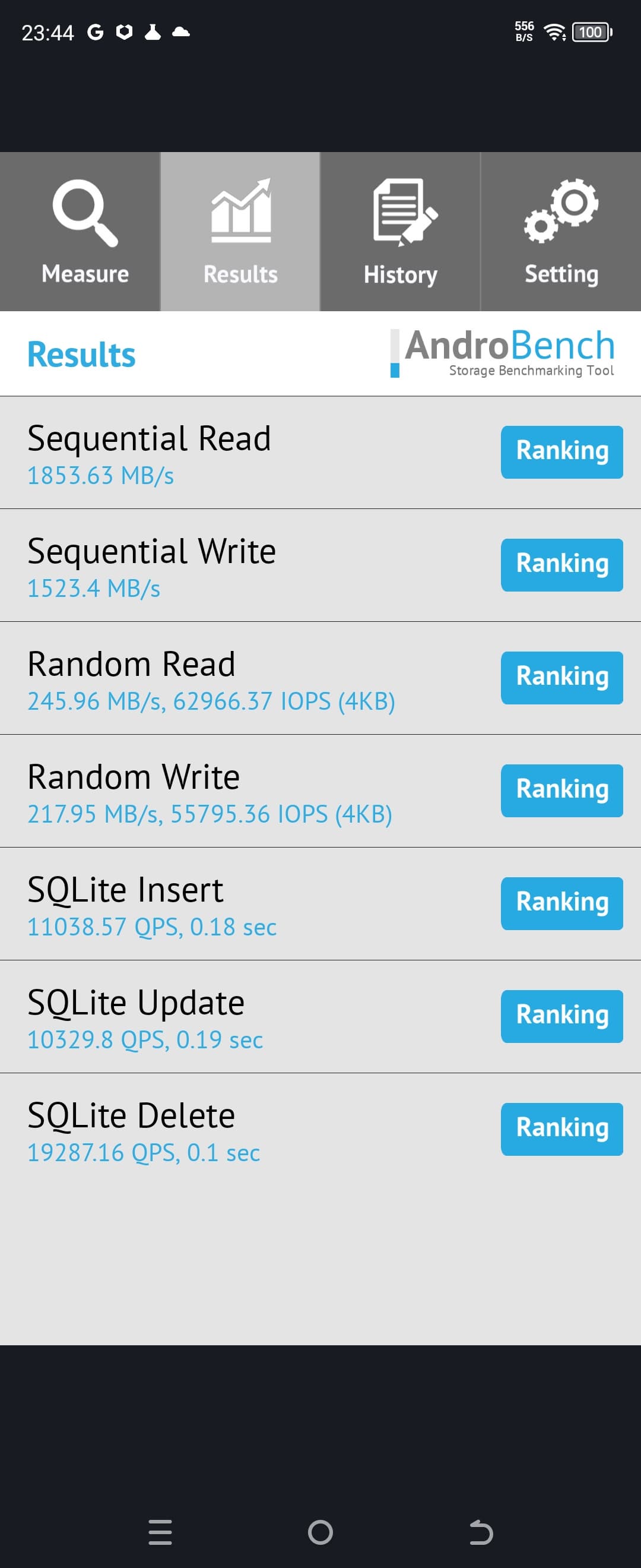 Результаты теста AndroBench на скорость работы с памятью: