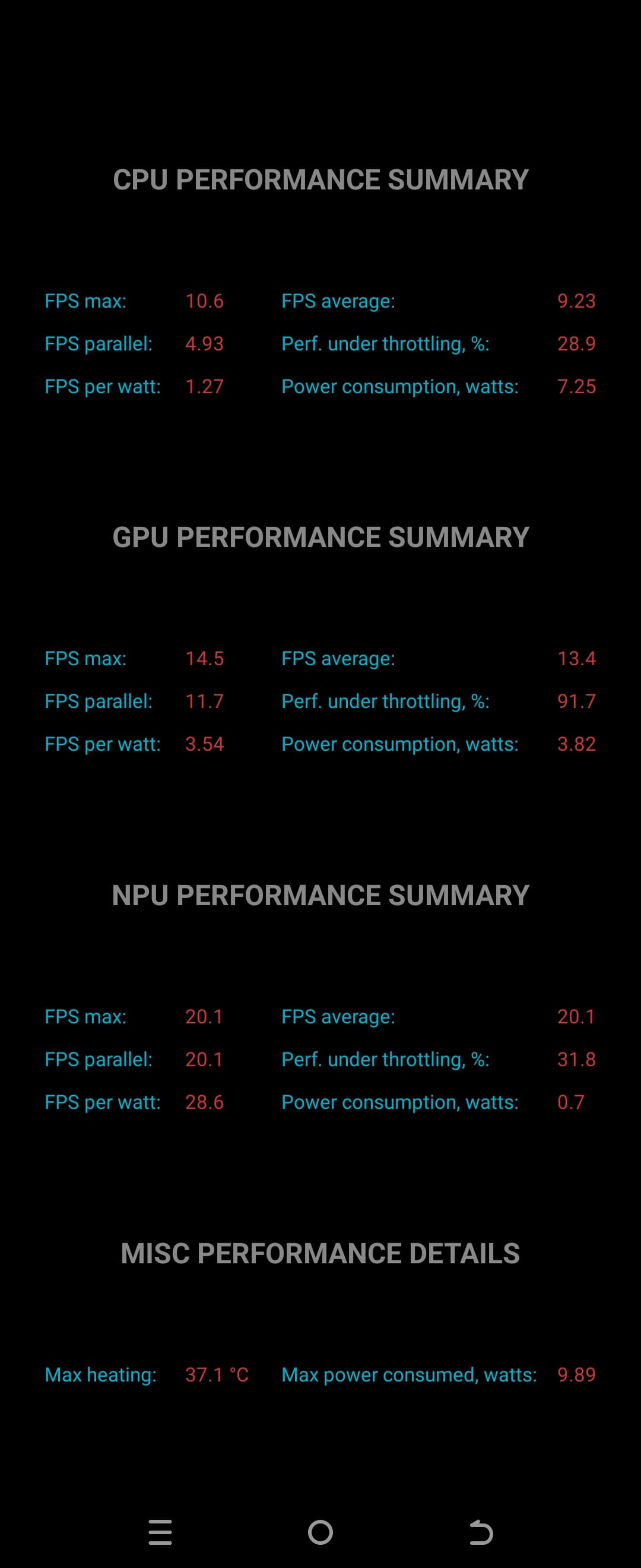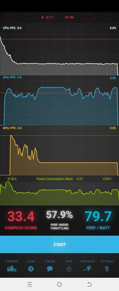 Тест на снижение производительности при нагреве мы проводим с помощью программы Burnout Benchmark, которая позволяет нагружать CPU, GPU и NPU: